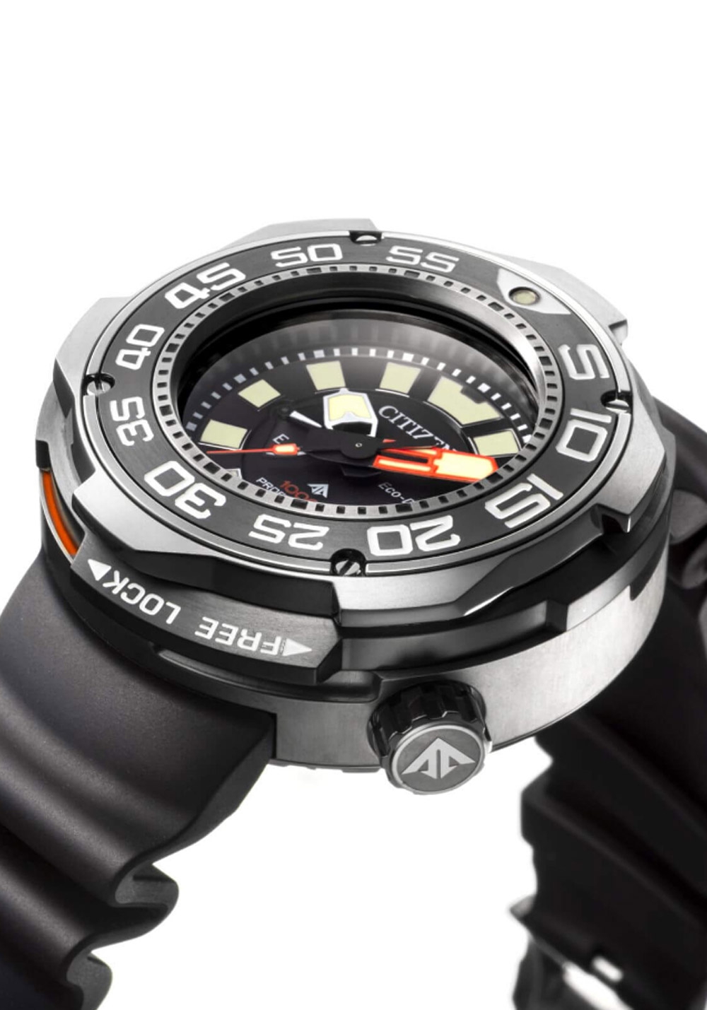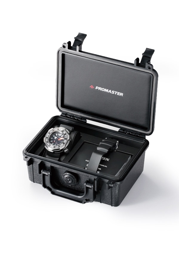 , die auch für Sättigungstauchen in großen Tauchtiefen geeignet ist. Das Druckausgleichsventil auf der 10-Uhr-Position des Gehäuses gibt während des Sättigungstauchens Helium Gas in die Uhr ab, um einer Beschädigung oder einen Bruch des Werks vorzubeugen. Um die noch bessere praktische Funktionalität unter Beweis zu stellen, führte CITIZEN in Kooperation mit JAMSTEC (Japan Agency for Marine-Earth Science and Technology), der Behörde für Meeresforschung in Japan unabhängige Tests zur Bewertung und Bestätigung durch. Hierbei wurden die Auswirkungen von hohem Wasserdruck auf die Wasserdichtigkeit
