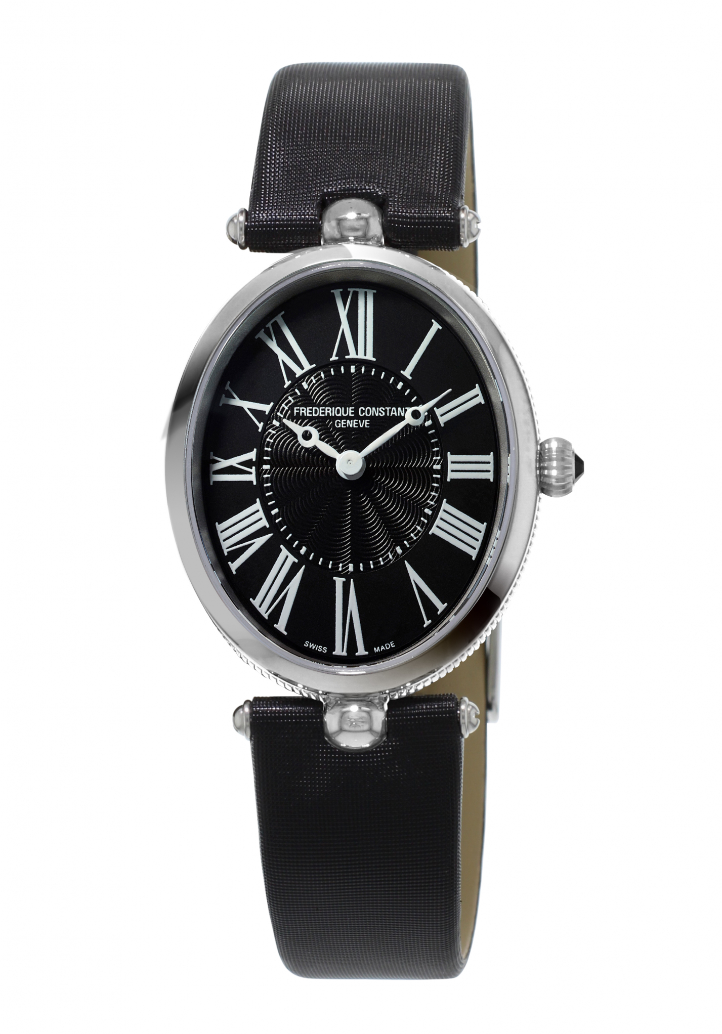 Die Uhr wird an einem hochwertigen, schwarzen Satinband geliefert.