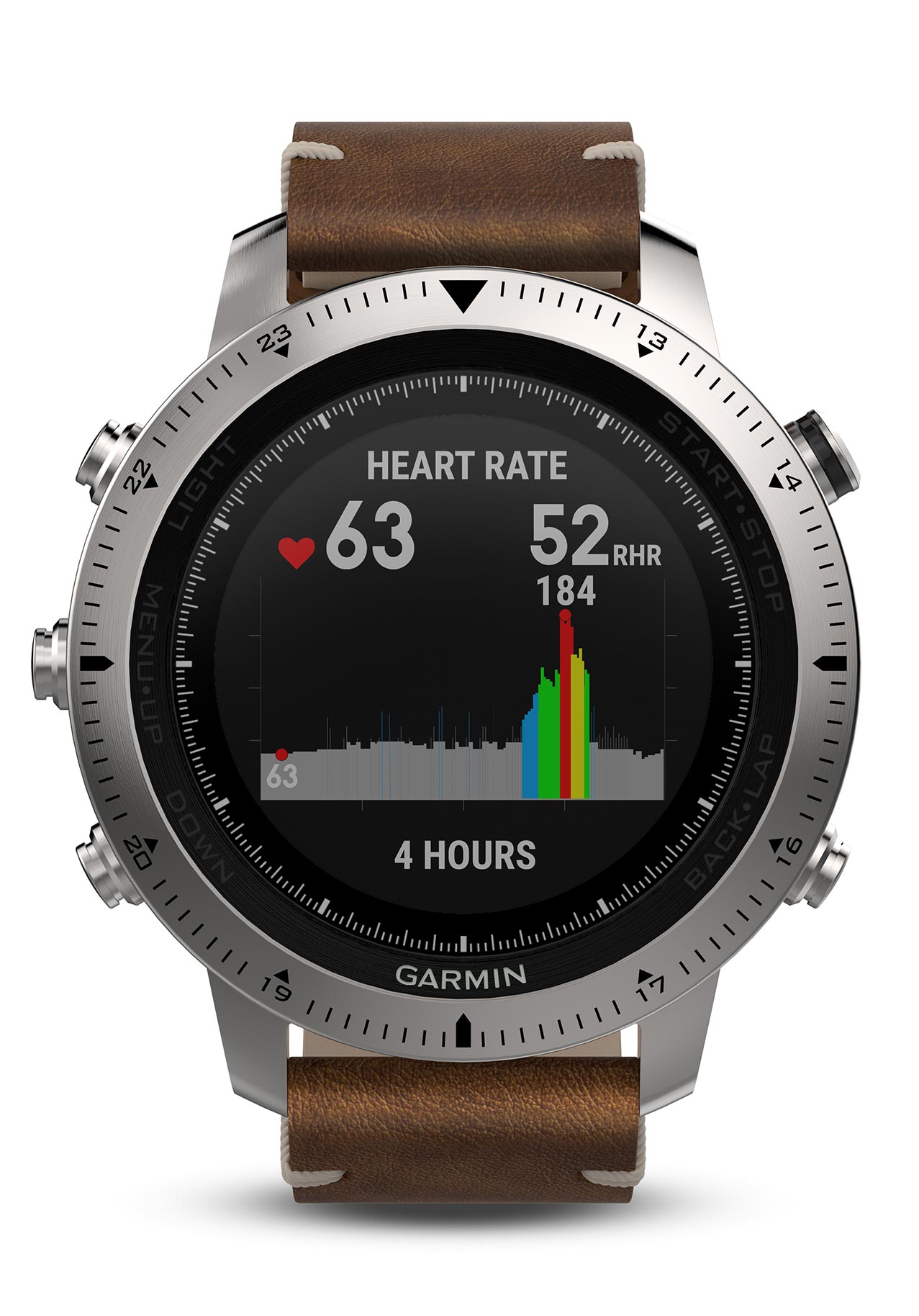 Über das transreflektives Garmin Chroma Farb-Display (1,2 Zoll) / 218 x 218 / lässt sich das Uhrendisplay je nach Geschmack selbst auswählen und bleibt fortwährend eingeschaltet und lässt sich auch bei direkter Sonneneinstrahlung sehr gut ablesen.