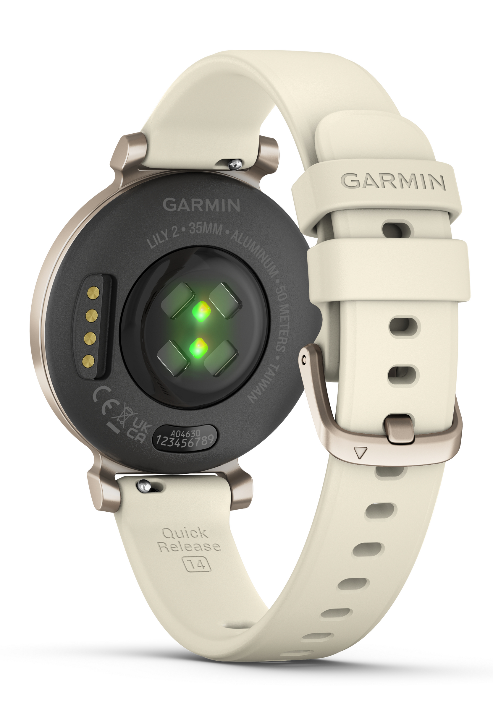 Die kleinste Garmin aller Zeiten aus der Kollektion Lily hat ein ca 35 mm kleines Gehäuse. Mit einer einfachen Gestik oder zweimal antippen wird das helle Touchdisplay aktiviert, das sich automatisch wieder abschaltet, wenn es nicht mehr benötigt wird. Damit werden keine eingehenden Anrufe, Nachrichten, News, Termine und andere Smartphone-Benachrichtigungen verpasst und direkt angezeigt. Am Handgelenk werden außerdem Daten wie Herzfrequenz, Schlafqualität, Energie- und Stresslevel, Sauerstoffsättigung, Schritte erfasst oder zum Menstruationszyklus, und unterstützt dabei einen aktiven Lebensstil. Sport Apps wie Gehen, Laufen, Radfahren, Schwimmen und Yoga können ausgewählt werden. Das Connected GPS zeigt Positionsdaten beim Sport via Smartphone an. Über das gekoppelte Smartphone können aktuelle Wetterdaten abgerufen, Kalendereinträge angezeigt und der Musikplayer gesteuert werden.