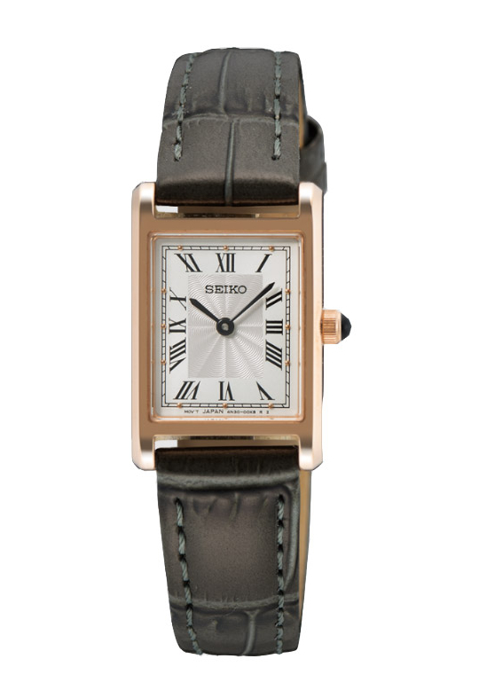 Diese zarte Damenuhr aus dem Hause Seiko ist ideal für das schmale Handgelenk. Das silberfarbene Gehäuse der Uhr besteht aus hochwertigem Edelstahl und weist eine Breite von nur 22 mm sowie eine Höhe von ca 4,8 mm auf. Es ist mit einer roségoldfarbenen Beschichtung veredelt. Im Inneren der Uhr arbeitet ein zuverlässiges japanisches Quarzwerk Kaliber
