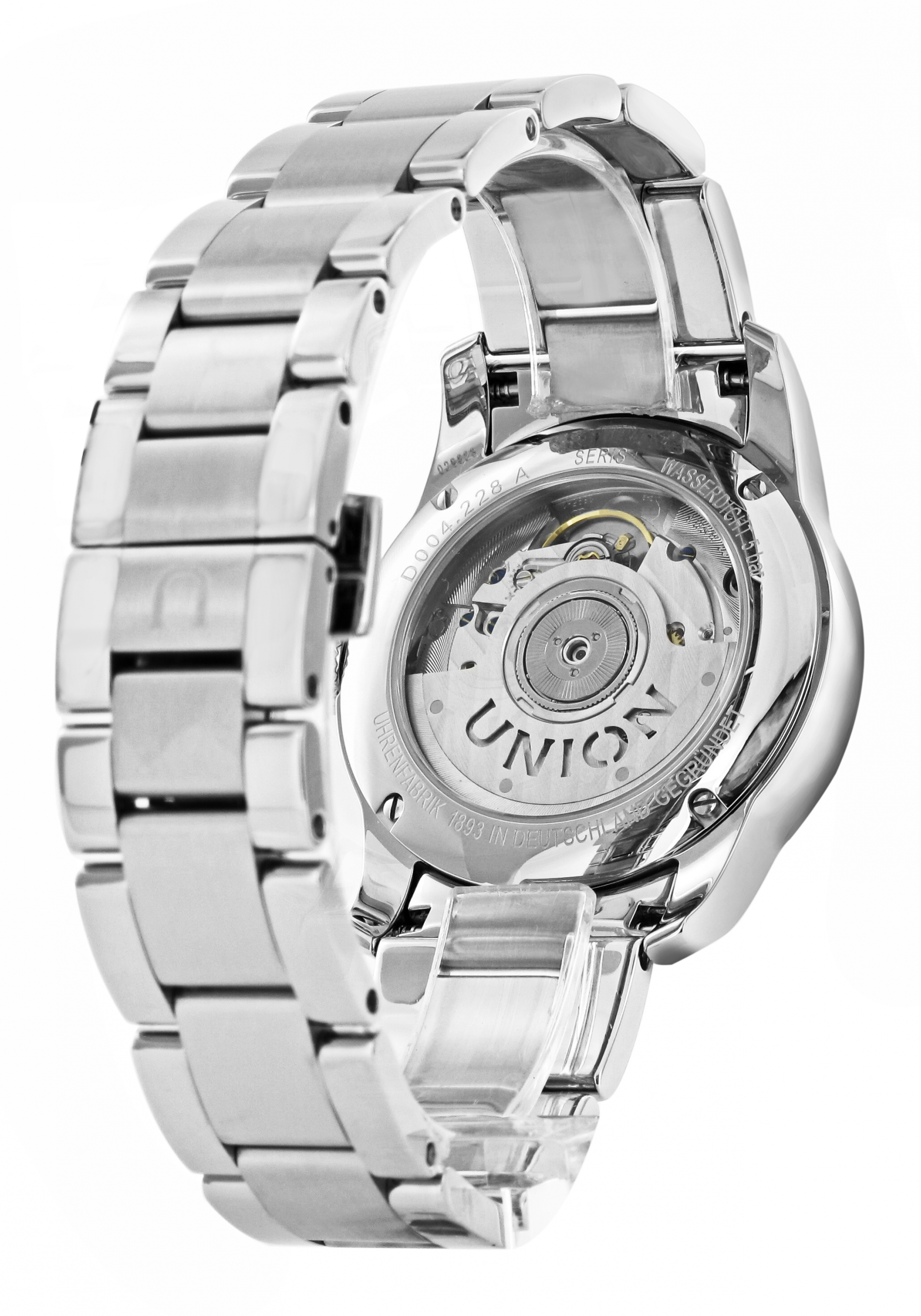 - Graziöse-elegante AutomatikuhrDie Automatikuhr ist eine mechanische Armbanduhr, bei der die Feder bei Armbewegungen des Trägers durch einen Rotor in kleinen Schritten aufgezogen wird.der Marke Union Glashütte S.A.