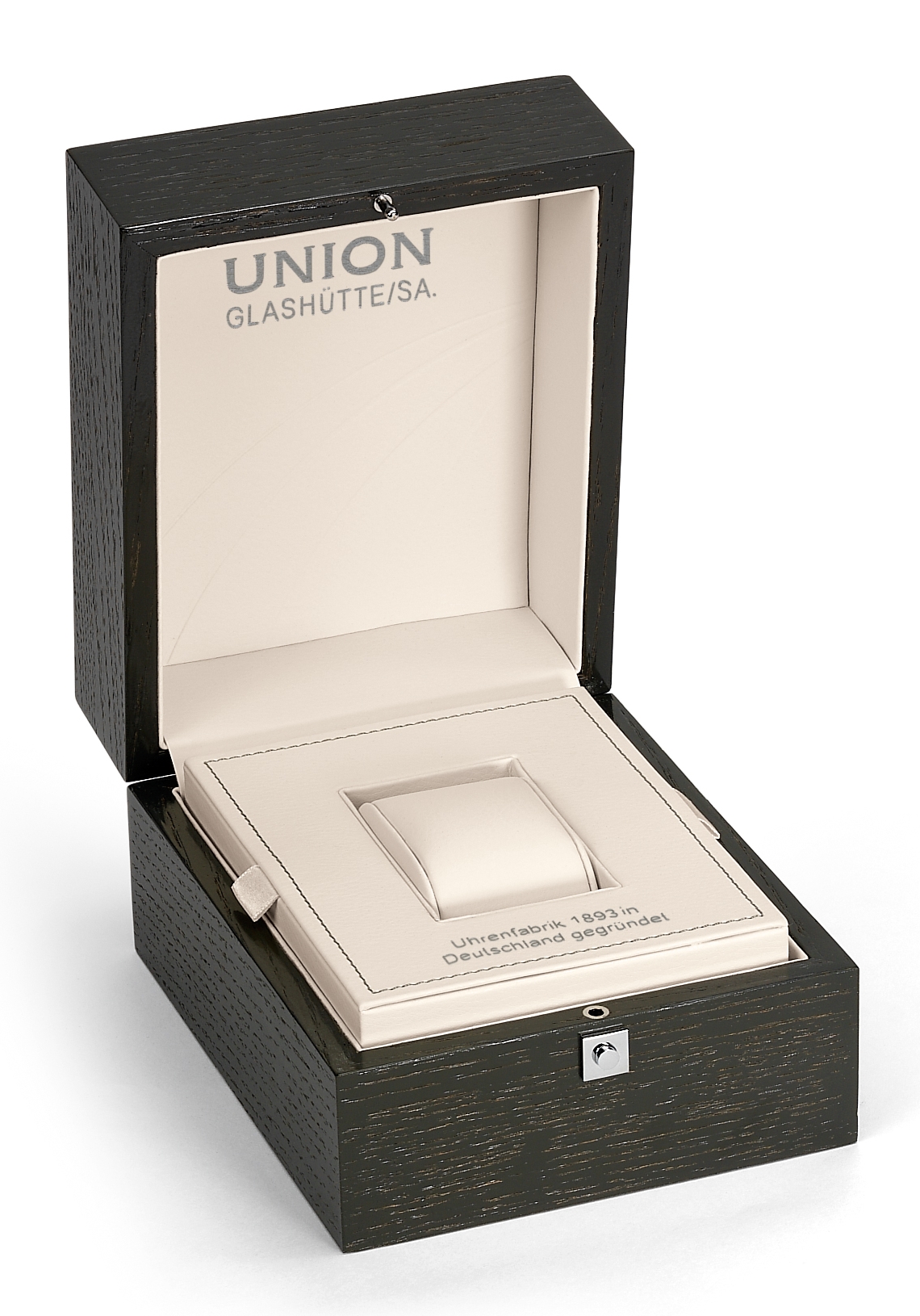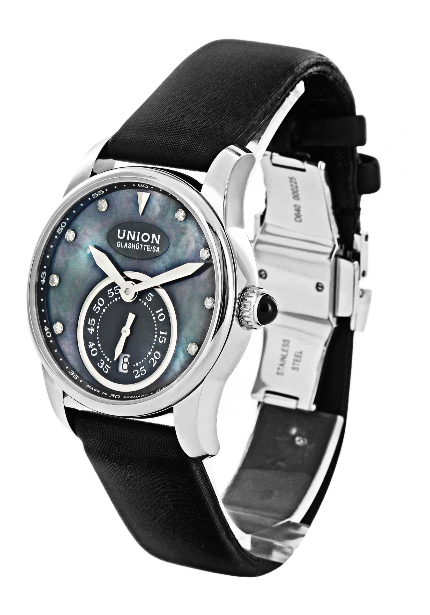 Eine wunderschöne Automatikuhr aus dem Hause Union Glashütte. Schon beim öffnen der edlen Verpackung strahlte mich die Uhr an. Das Zifferblatt wirkt durch seinen perlmuttern, ja fast ein wenig "ölig" aussehenden Farbton, in Kombination mit den acht Brillanten sehr edel, elegant und doch auch ein bißchen verspielt. Das Glas ist sehr gut entspiegelt und auch die Rückseite der Uhr ist aus Glas gefertigt, was einen wunderbaren Einblick in die Uhr gewehrt. Das Lederarmband ist sehr angenehm zu tragen und der raffinierte Schließmechanismus rundet diese Uhr perfekt ab. |