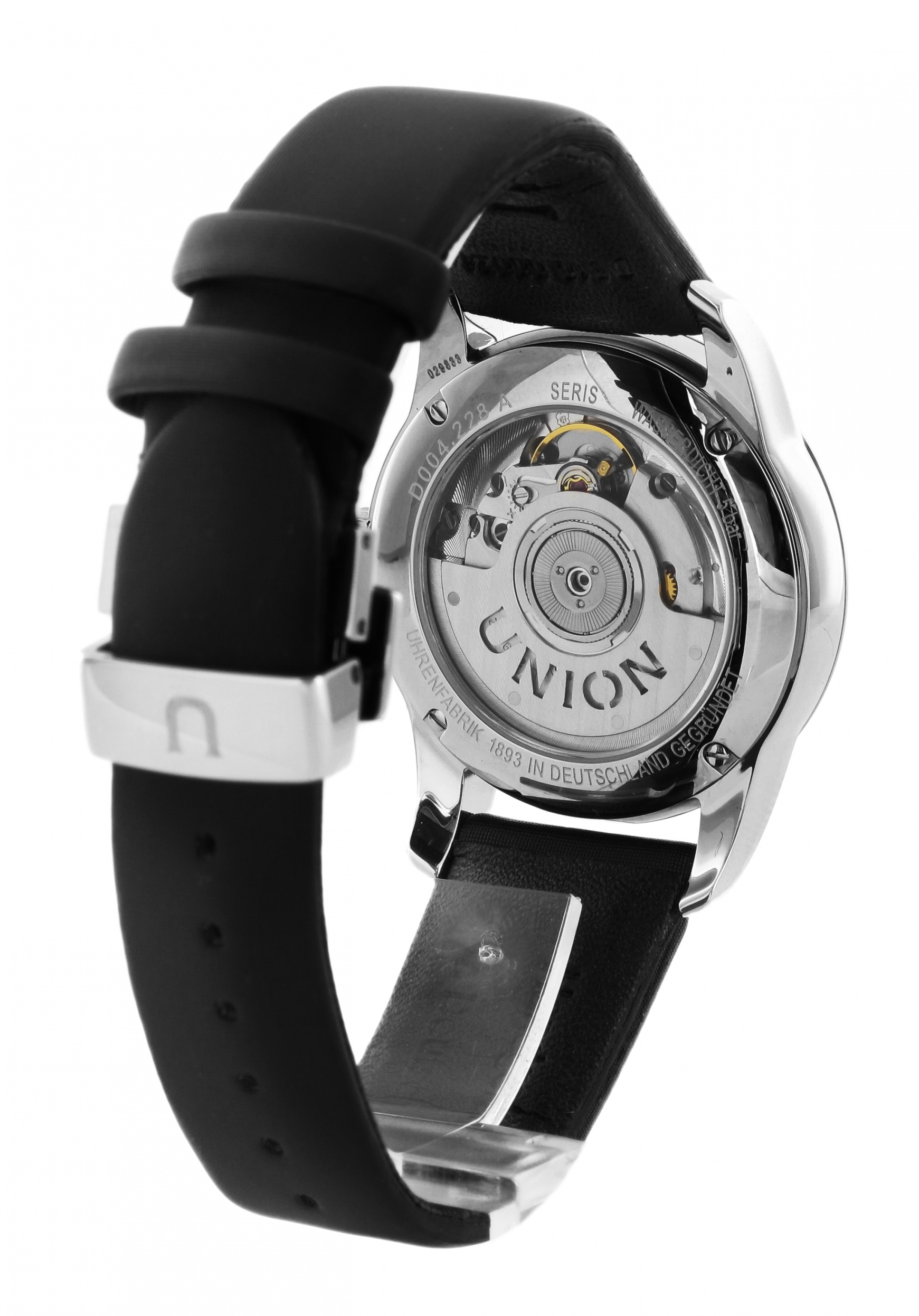 - Graziöse-elegante AutomatikuhrDie Automatikuhr ist eine mechanische Armbanduhr, bei der die Feder bei Armbewegungen des Trägers durch einen Rotor in kleinen Schritten aufgezogen wird.der Marke Union Glashütte S.A.